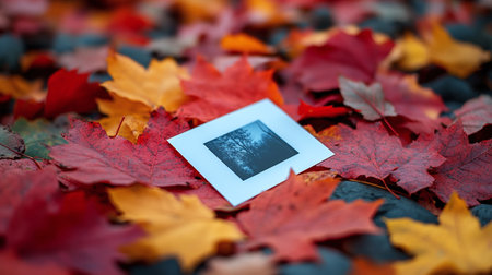 Generative AI Image of Photo Paper with Maple Leaves in the Forest in Autumn