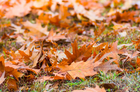 Fallen leaves in the autumn forest. Selective focus. Nature.