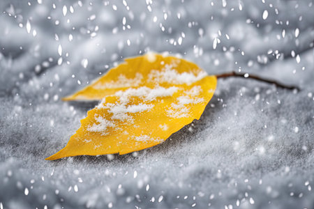 Autumn Leaf Covered in Snowfall on Cold Winter Ground (Generative AI)