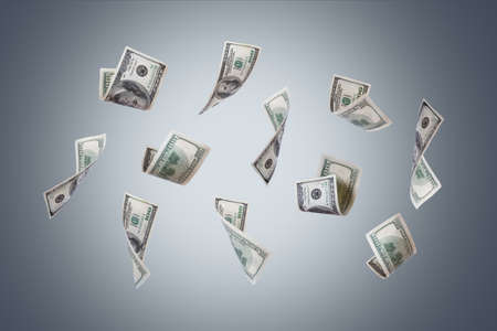 Dollar banknotes flying in the air. Concept of wealth and success.