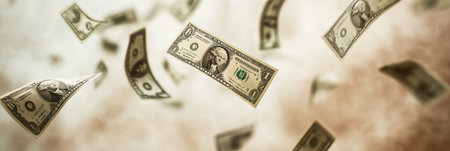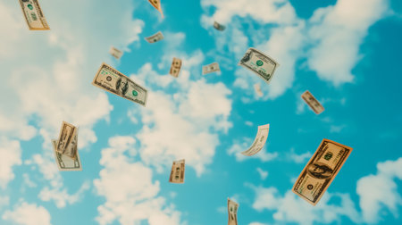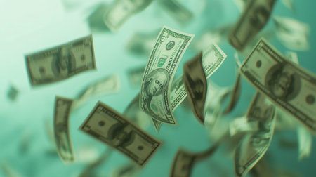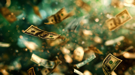 Dollar bills drift through the air, creating a lively and dynamic representation of abundance