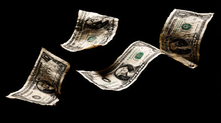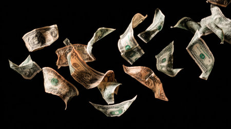A captivating scene of dollar bills floating through the air, set against a dark background. This image symbolizes financial movement and economic dynamics, perfect for illustrating themes of wealth and commerce.