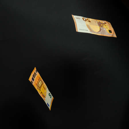 European banknotes on a black background, rain of money, human investment in currency. new