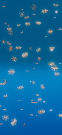 Abstract design of snowflakes falling on a blue background, perfect for holiday or winter themes.