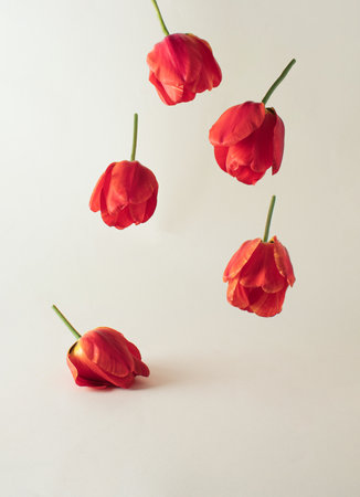 Tulip flowers to bright background. Minimal concept.