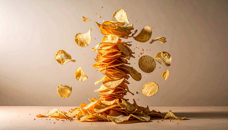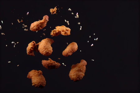 An enticing image of crispy fried snacks suspended in mid-air, enhancing the allure of deliciousness and inviting you to experience unforgettable flavors.