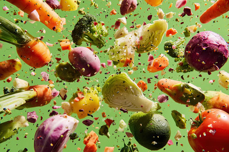 Experience Vibrant Fresh Vegetables in Motion for Promoting Healthy Eating Habits