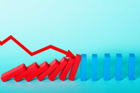 Wooden block stack to downturn graph. Concept for recession economy and declineing graph.