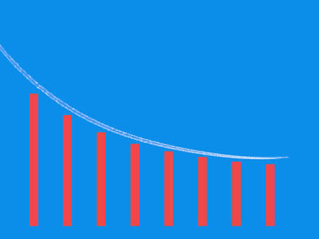 A fast-falling histogram and an airplane flying above it in the sky leaving a trail.