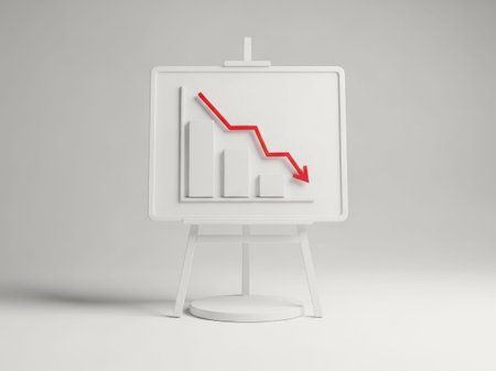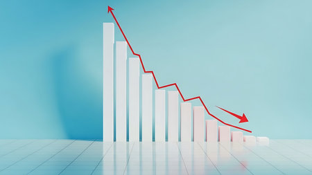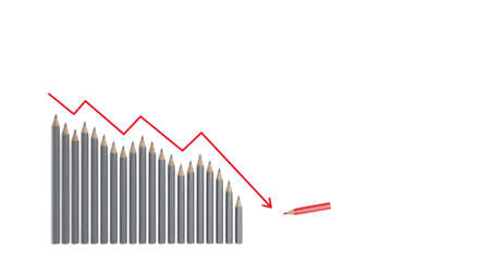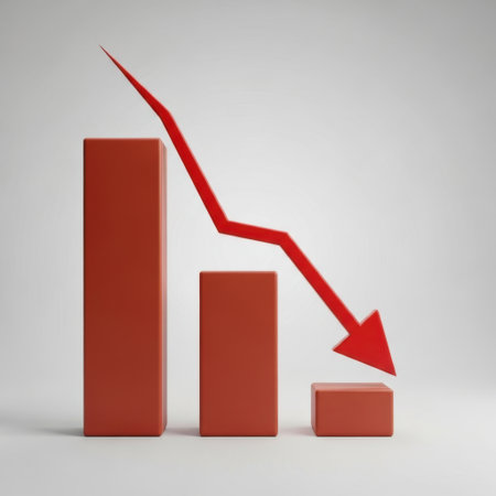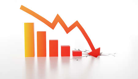 This image features a 3D rendering of a downward trend chart isolated on a white background. The chart displays a red downward arrow, indicating a decline in values. The image is clear and SEO-friendly, ideal for visualizing negative trends or economic downturns.