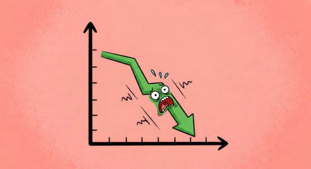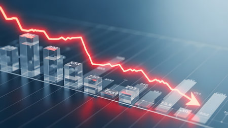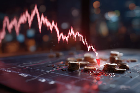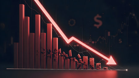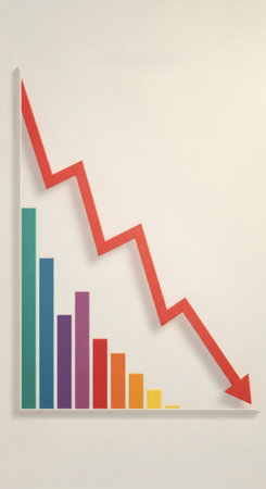 A stark visual representation of economic decline, featuring a downward-sloping trend line on graph paper, symbolizing financial downturn and market challenges.