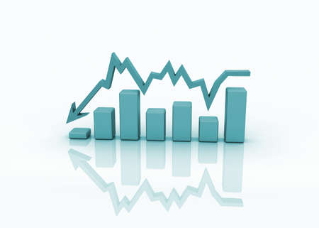 3d render, Three Dimensional Graph With Arrow Symbol Over gray Background, descent