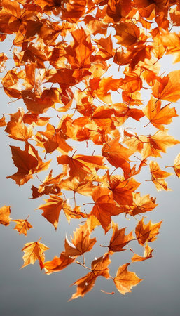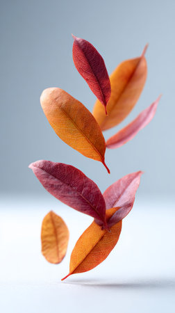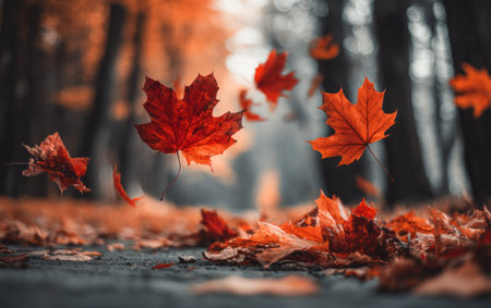 Red and orange leaves falling in an ethereal dance.