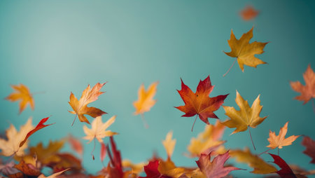 AI Generated. Autumn leaves scattered on a teal background
