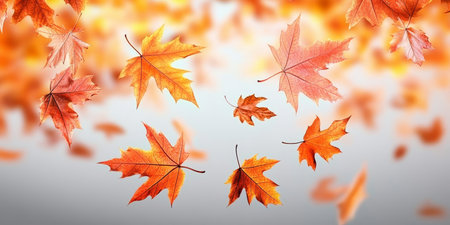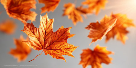 Autumn Maple Leaves Gently Falling in a Delicate Dance, Creating a Warm October Landscape Scene