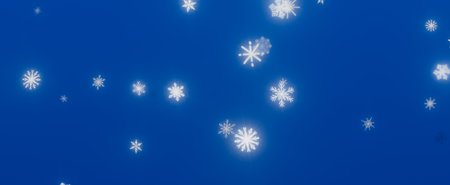 Image of falling snowflakes against a blue sky background