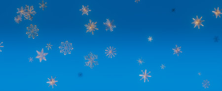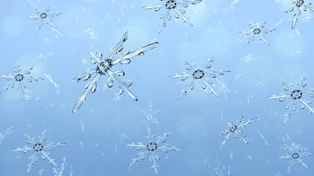 Snowflakes falling on blue background. 3d render illustration.