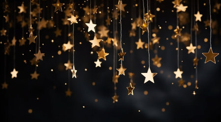 gold stars decorating the dark background with sparkling lights.