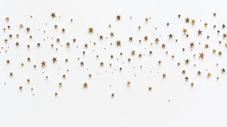 A scattering of small, golden star-shaped confetti pieces creating a festive and celebratory feel on a clean white background.