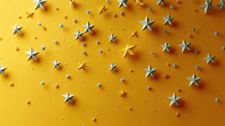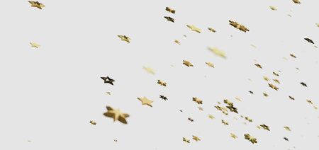 A captivating scene of golden and silver stars falling gracefully against a softly lit background, perfect for creating a celebratory and festive mood in designs.