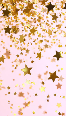 Elegant gold star confetti scatter on a soft light rose background for festive occasions