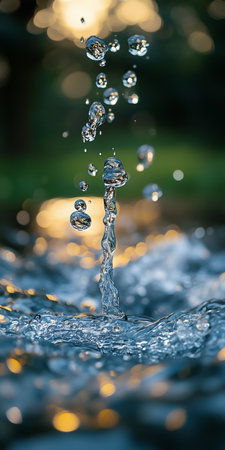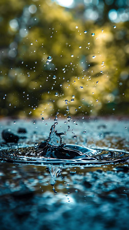 A stunning close-up image of water droplets rising and splashing in a serene outdoor setting, capturing the beauty of nature.
