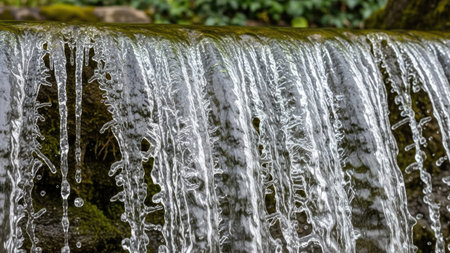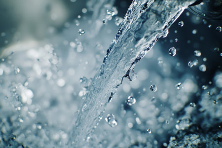 Experience the invigorating purity of crystal clear water as it gracefully flows over natural textures. This dynamic scene captures refreshing splashes and mesmerizing ripples, perfect for conveying vitality, nature, and a sense of pure, clean energy.