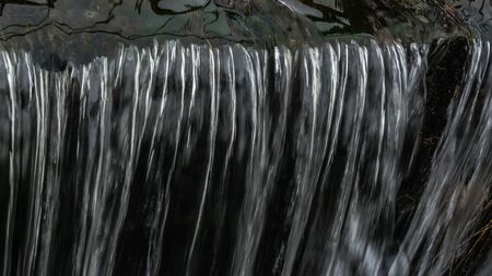 Black Waterfall. Blurred background with a stream of water. Dark abstract background