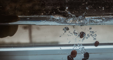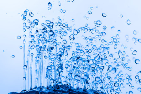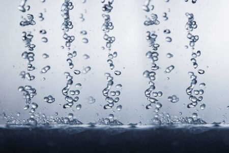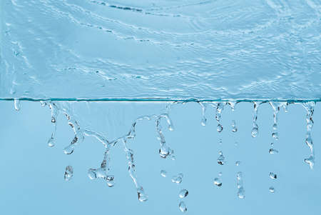Abstract an outbreak of water. Splash of water close-up. Frozen water drop photographed at high speed. Slow dripping of liquid with air bubbles. Nature backgrounds or Wallpaper.Frozen liquid splashes