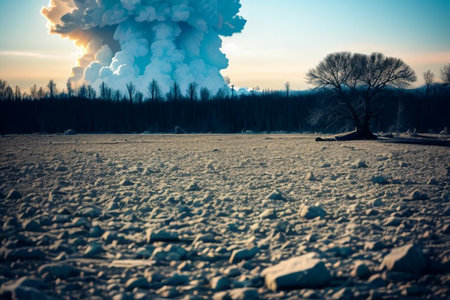 Nuclear war concept. Explosion of nuclear bomb. Creative artwork decoration in dark. Selective focus