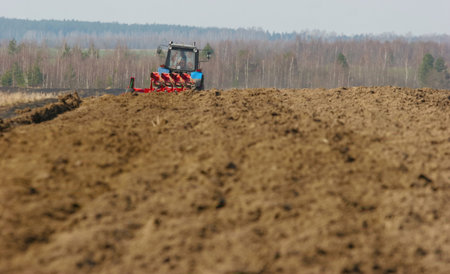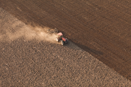Tractor preparing land for sowing