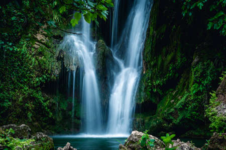 Beautiful waterfall in the forest, long exposure photo, soft focus