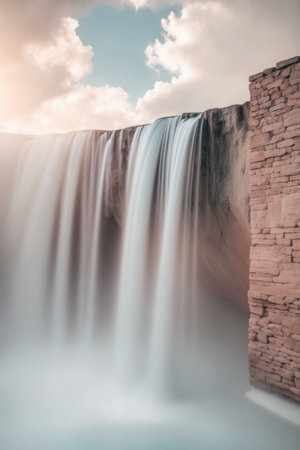 AI Generated. On waterfall waterfall sunlight through clouds pastel above wall floating