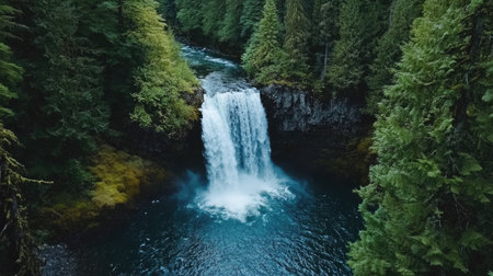 A waterfall in the middle of a forest. AI generative image.