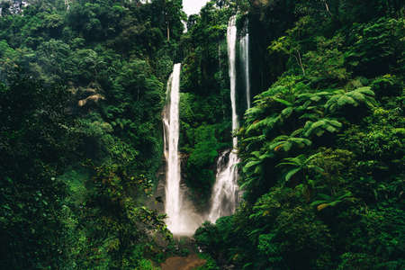 Jungle waterfall cascade in tropical rainforest. Waterfall in the forest.