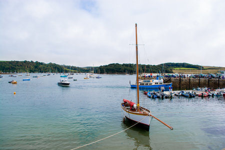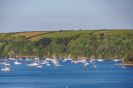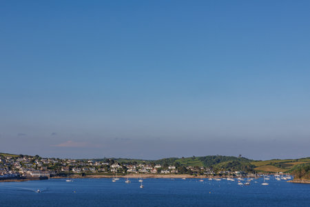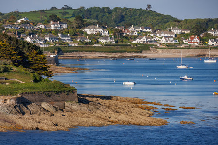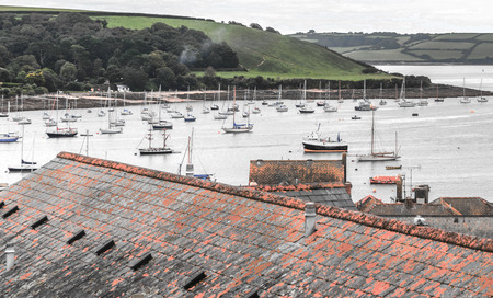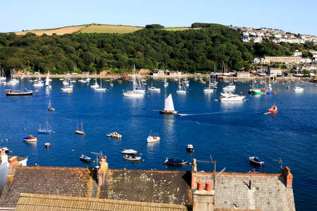 Fowey (England), UK - August 19, 2015: Looking across Fowey estuary to Polruan, Cornwall, England, United Kingdom.