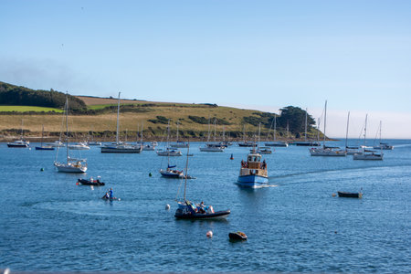 polruan, UK, June 17, 2025: passenger ferry leaving polruan for fowey in south cornwall