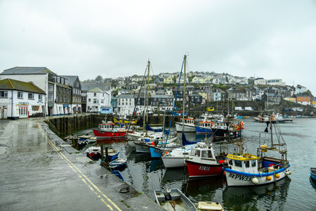 BRIXHAM, DEVON, UK, NOV 02 2015: Colorful houses above the picturesque harbour in Brixham