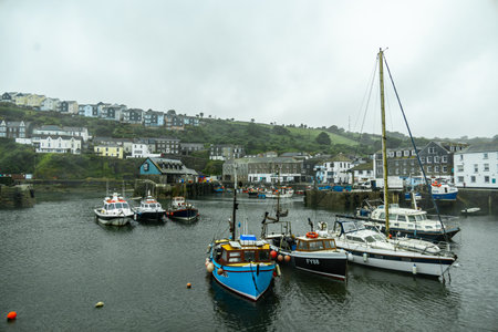 MEVAGISSEY, CORNWALL, UK, MAY 3. View of Mevagissey harbour in Cornwall on May 3, 2024. Unidentified people
