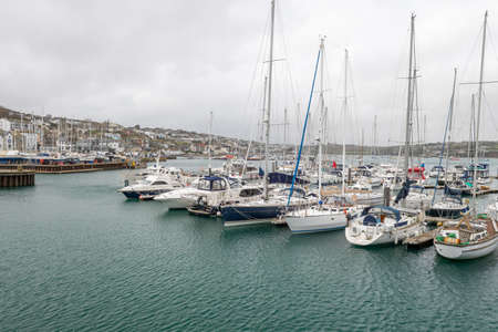 Howth near Dublin, Ireland - February 15, 2019: view of the marina of the city where are parked tourist boats on a winter day