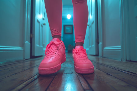 Explore the appeal of a stylish wooden floor paired perfectly with trendy sneakers