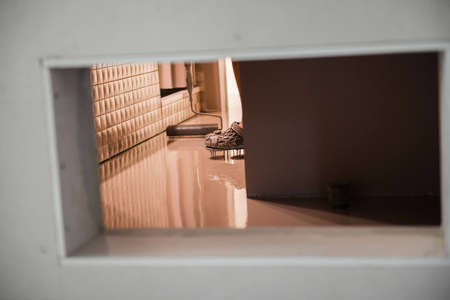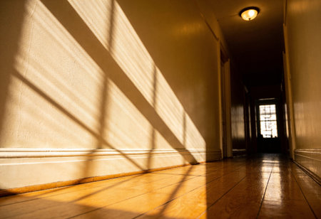 Empty room with light from window and shadow on the floor, vintage style