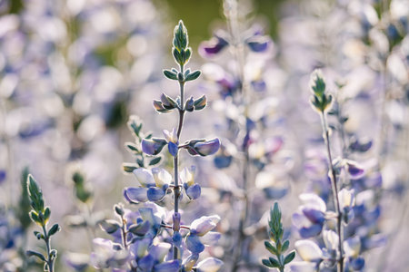 Blooming lupine flowers. Gentle warm soft colors.