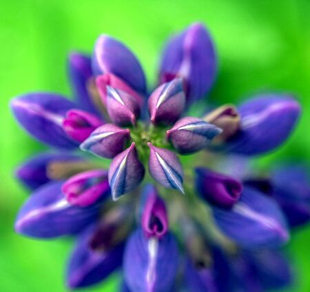 delicate purple Lupin in the garden top view, macro, narrow focus area