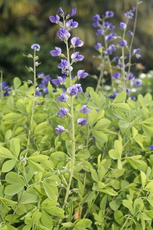 Blue false indigo (Baptisia australis) flowers. Fabaceae perennial plants native to North America. Purple butterfly-shaped flowers bloom in early summer.
