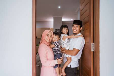 Family moment: Young malay couple with toddler smiling to each other focusing on the toddler