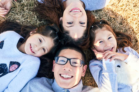 Portrait of a happy and funny young family outdoors.Family lifestyle concept