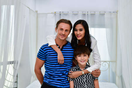 Family Concept. Family is happy in the house. Family is doing activities in the bedroom. The family loves each other happily.