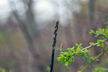Green asparagus sprouts growing on bio farm field in Limburg, Belgium
