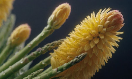 Vertical image of fresh stalks of asparagus tied with rustic string on yellow background. fresh and organic vegetable produce.